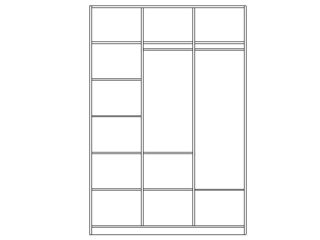 • po otwarciu drzwi szafa podzielona jest na 3 części: półka od góry, miejsce na ubrania wiszące i kilka półeczek,